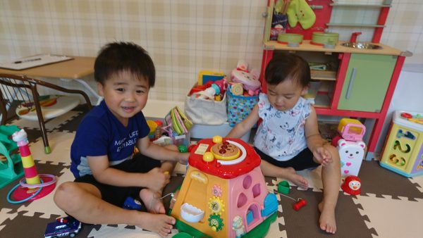 お弁当を食べた後は、お二人で仲良くおままごと…となるはずでしたが、オモチャの取り合いで、妹ちゃんが「ママー」と涙😢