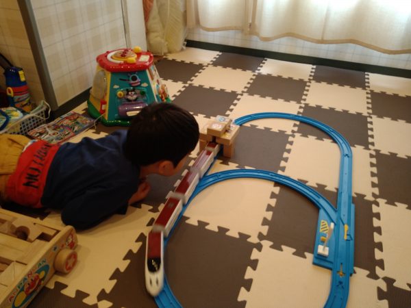 線路を上手につなげたのですが、線路のないところも走って行ってしまって、それがまた楽しかったです✨