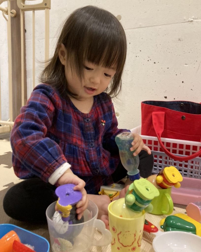 最初はおもちゃを見つめたり👀、お部屋全体が気になっている様子😆
