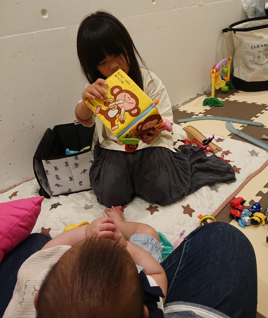 とっても優しいお姉ちゃんは、さっそく妹ちゃんに布製の絵本を読んでくれました🤗