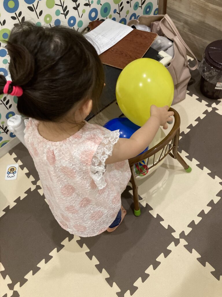 風船を気に入り、お椅子に座らせてあげようとしていました😆
