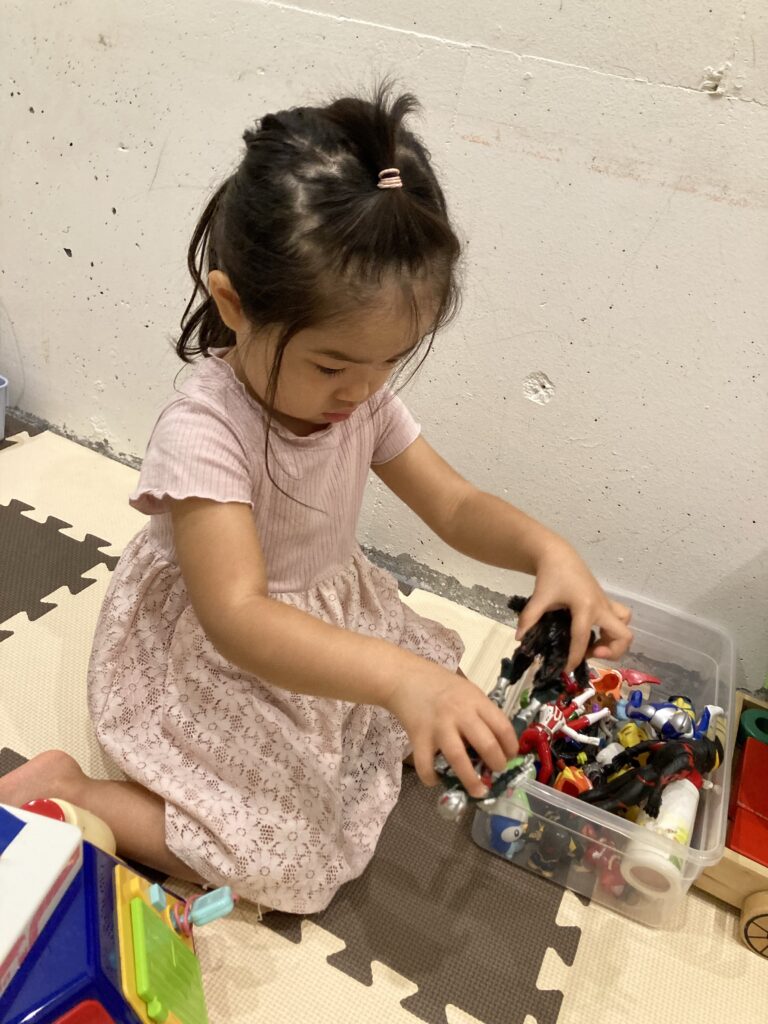 お家にはないウルトラマン人形を見つけ、ガサゴソ‥♡どうやって遊ぶかな?☺️と見守っていると、足の裏を合わせて足の大きさ比べをして遊んでいました☺️♡