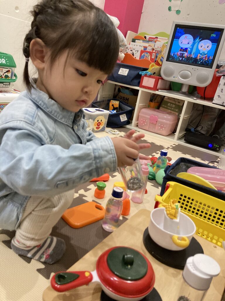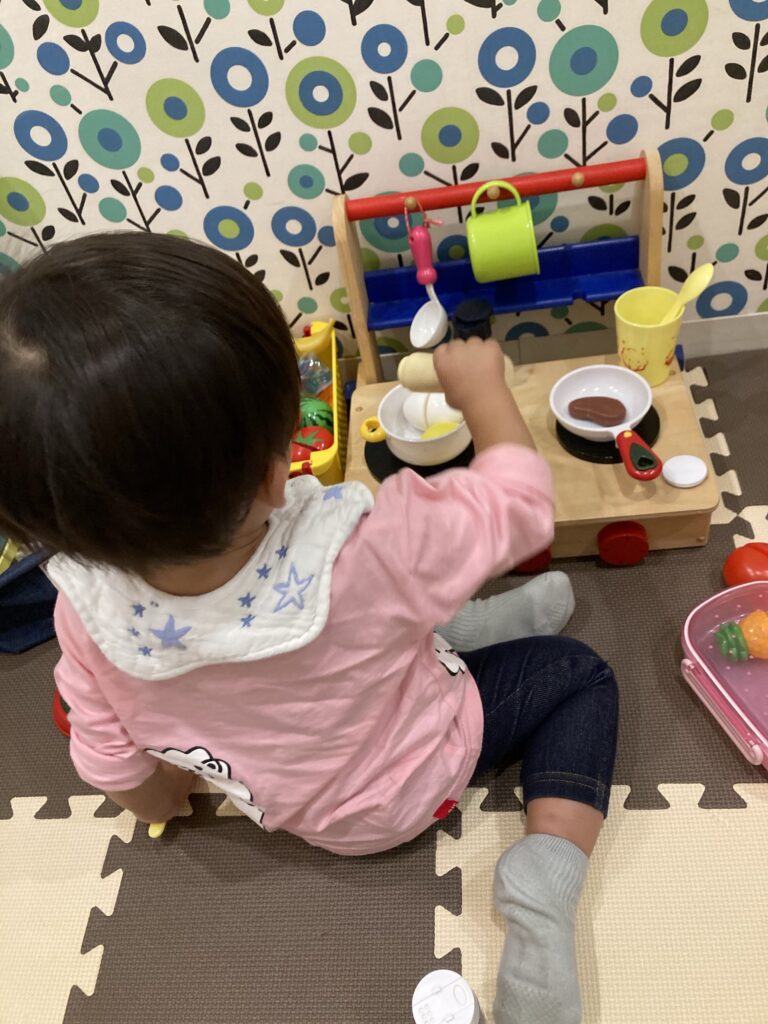 おままごとでは、前回は包丁でカットするだけだったのが今回は炒めたり調味料も入れたりするなど前回とは違ったお姿を見せてくれていました😍