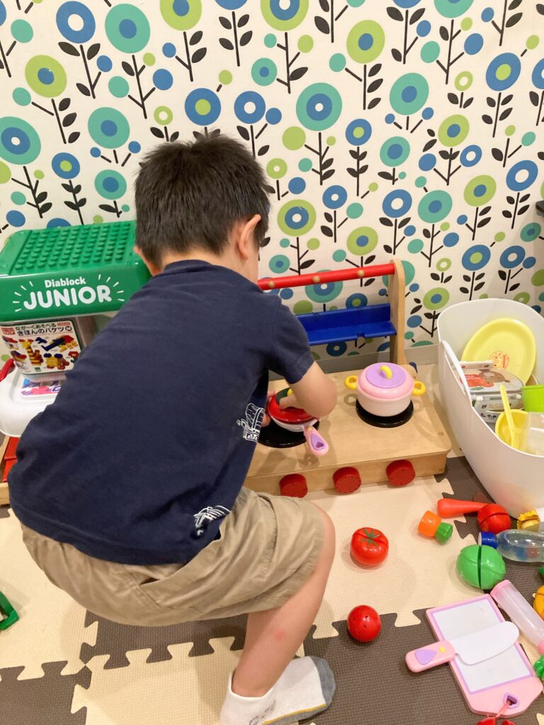 今回も机の上にたくさんのおままごとをご用意して、この嬉しそうな笑顔🤭