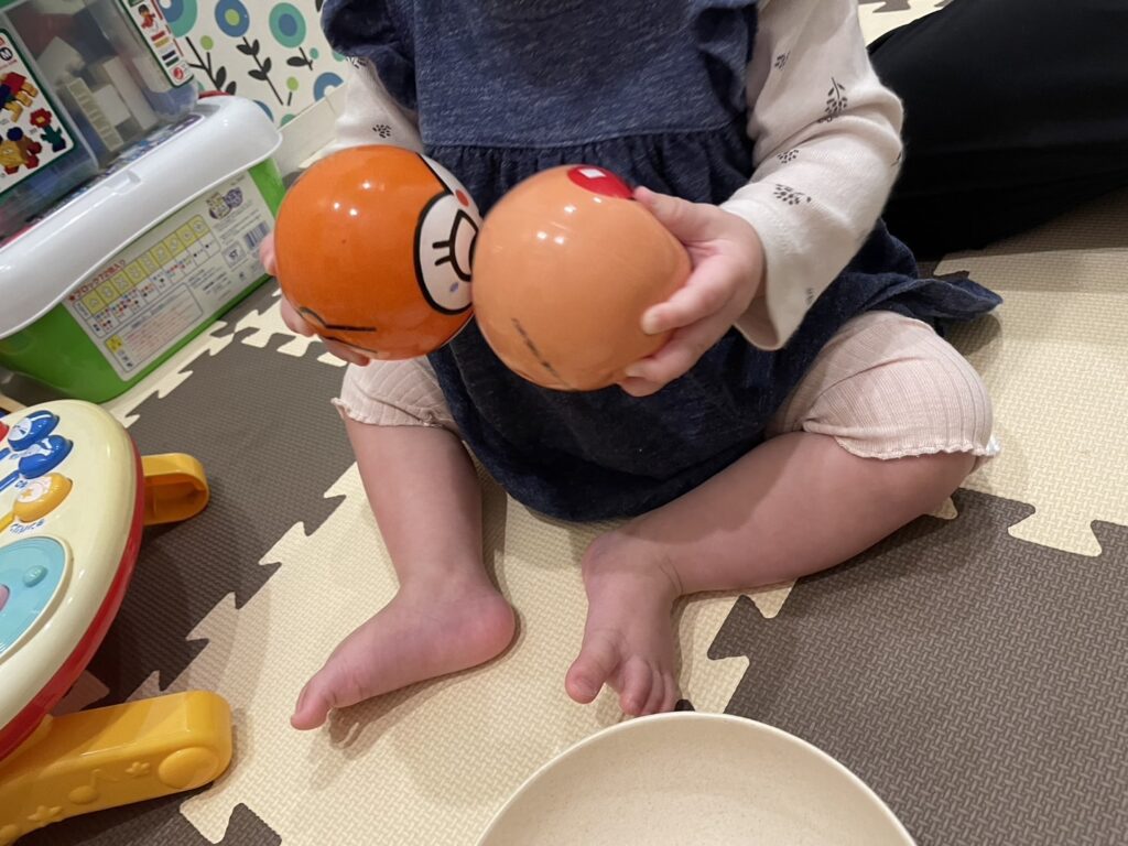 小さなおててで大きなボールをしっかり握ってボールとボールを合わせて楽しんでいました☺️