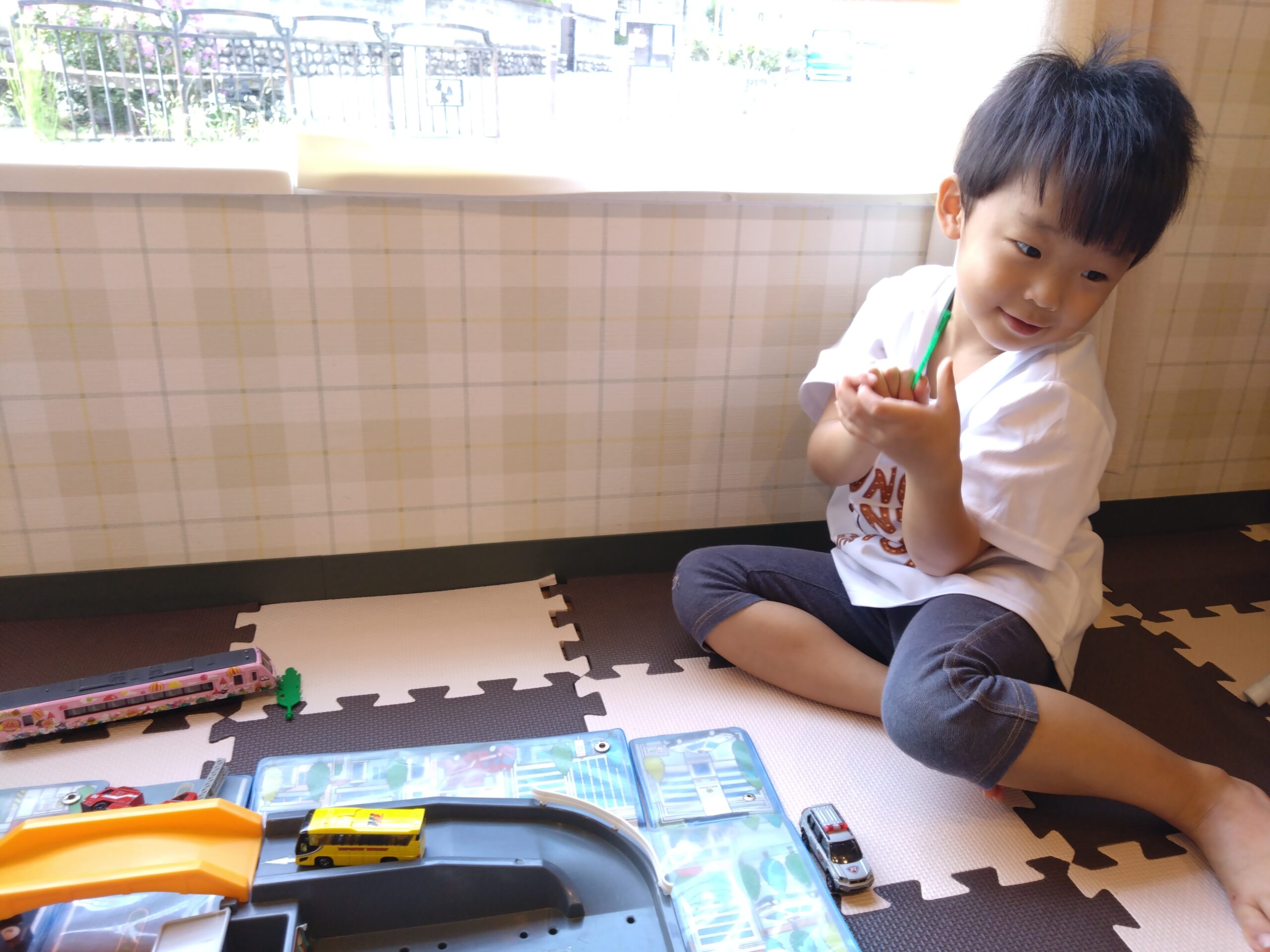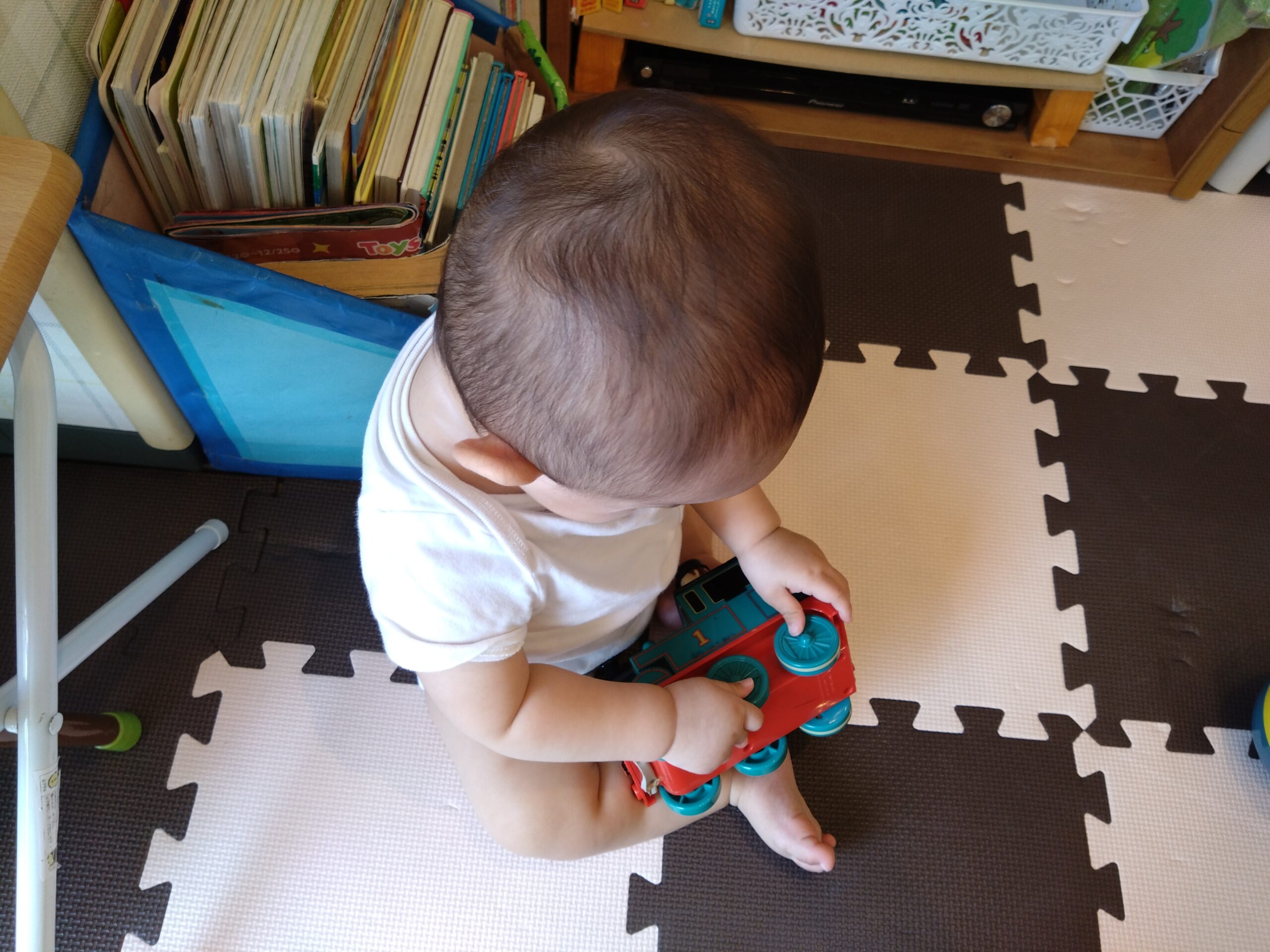 くるくる回るタイヤに興味いっぱいで、上手に回したり触ったり集中して遊んでくれていました💓