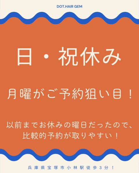 月曜営業 美容室 宝塚小林 託児のできる美容室