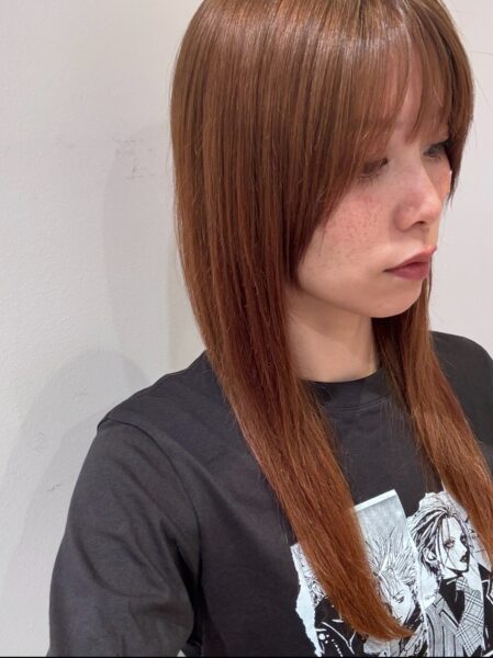 すると写真のようにブリーチ2回した髪でもドライヤーで乾かすだけでこのストレート、艶が出てアイロンいらずで楽になります!