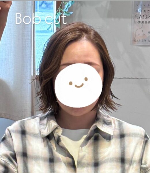 ボブにしたらぺちゃっとしそうだから迷うとの事でしたが、カウンセリングをしてどう切ればボリュームが出るか考え切らせていただきました。