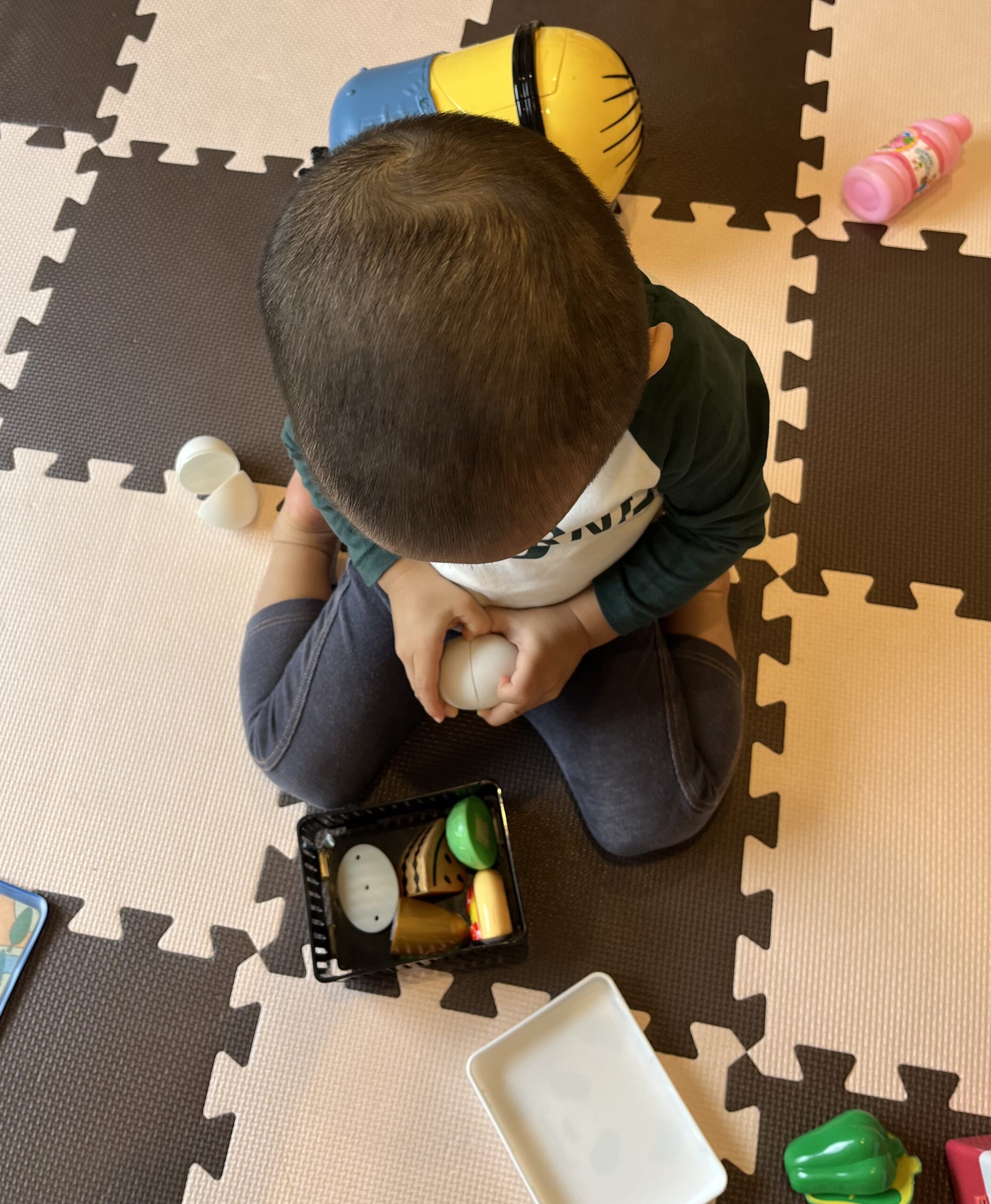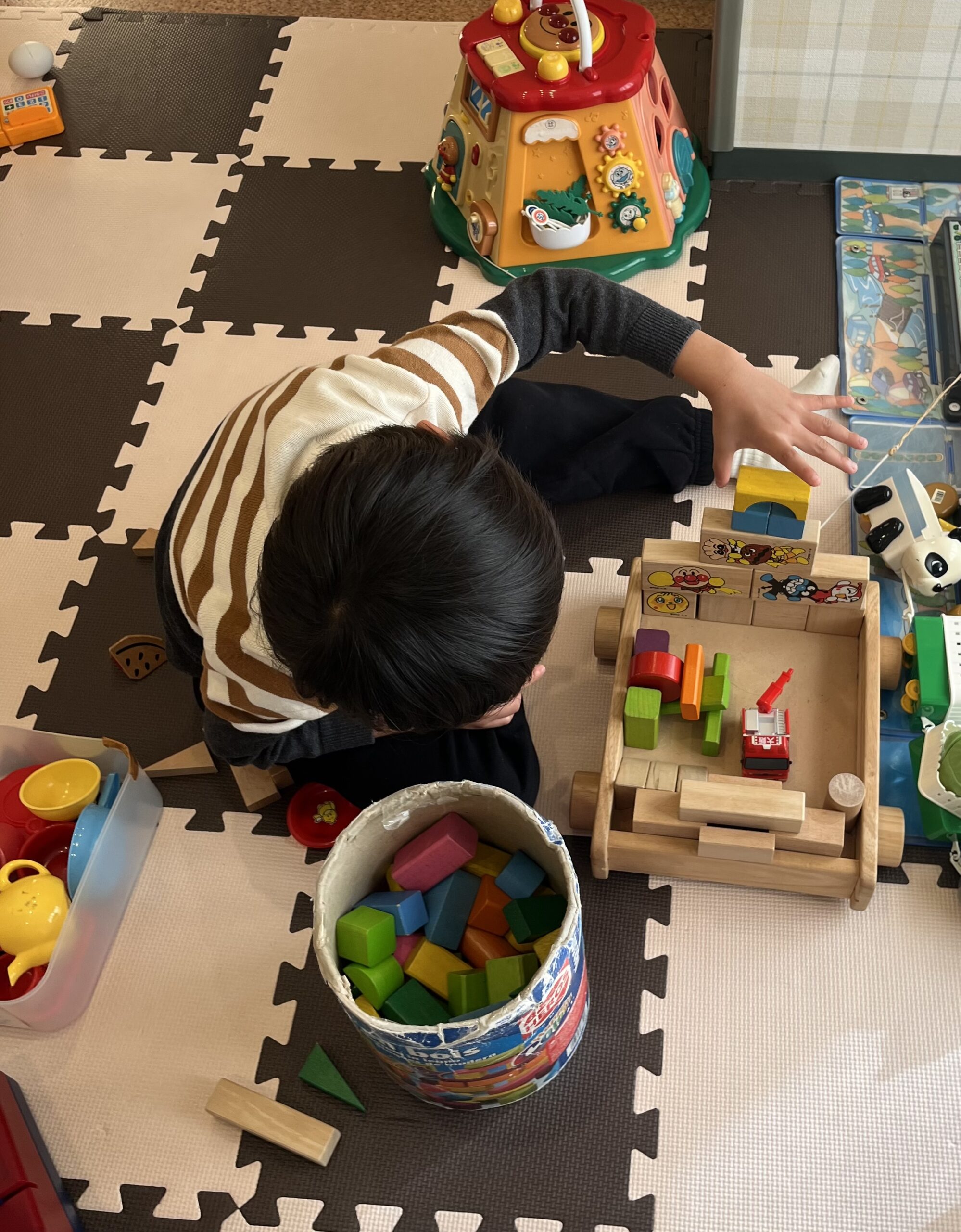 遊びの中で『あれ?』と思うと玩具を色々な角度から触ってみたり、引っ張ってみたりして確認しながら遊んでいました!