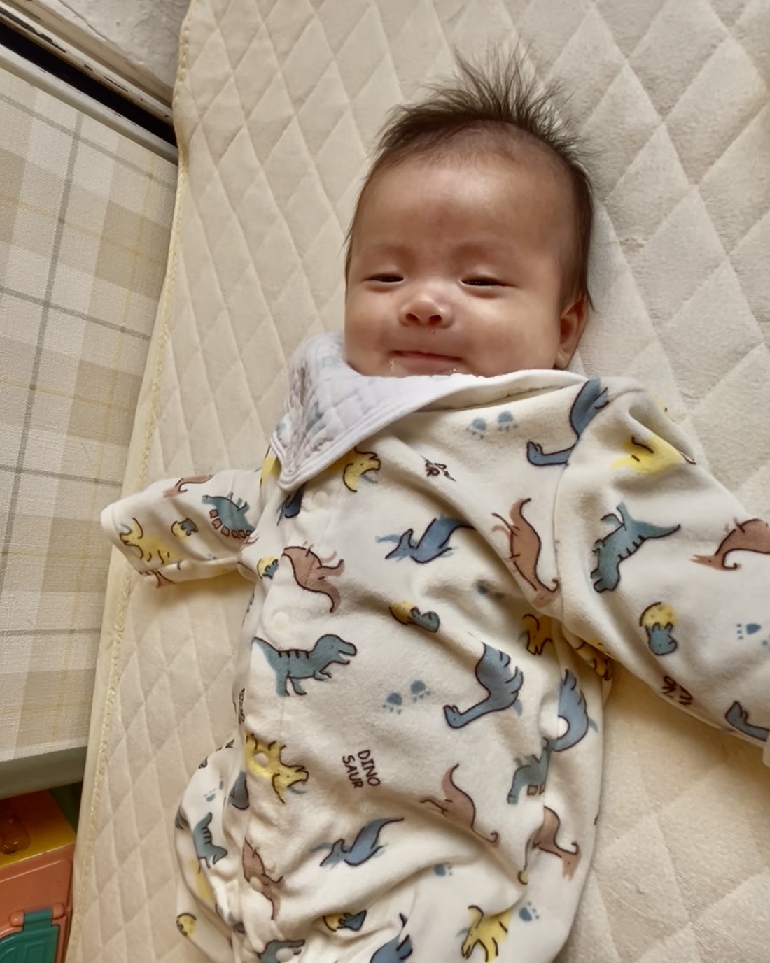 触ったり、引っ張ったりしていっぱい遊びました😊 クルンと寝返りもとっても上手でした✨