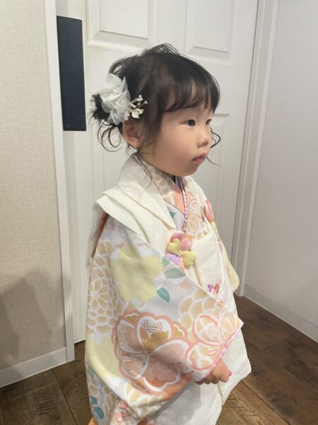 3歳の女の子も着付け中もヘアセット中もジッとしてくれていて、とてもお利口でした♪