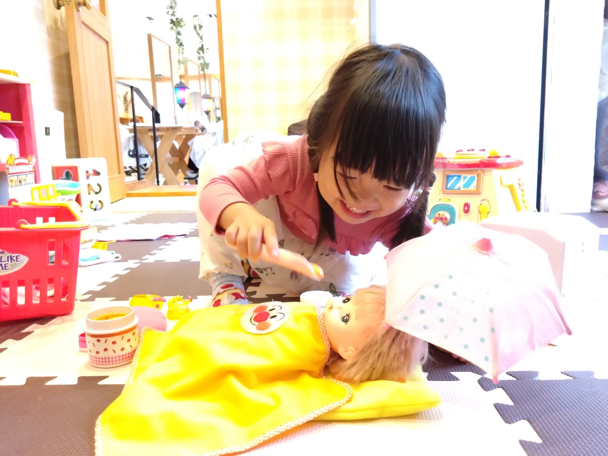 メルちゃんのお世話に一生懸命✨笑顔もいっぱいです😍