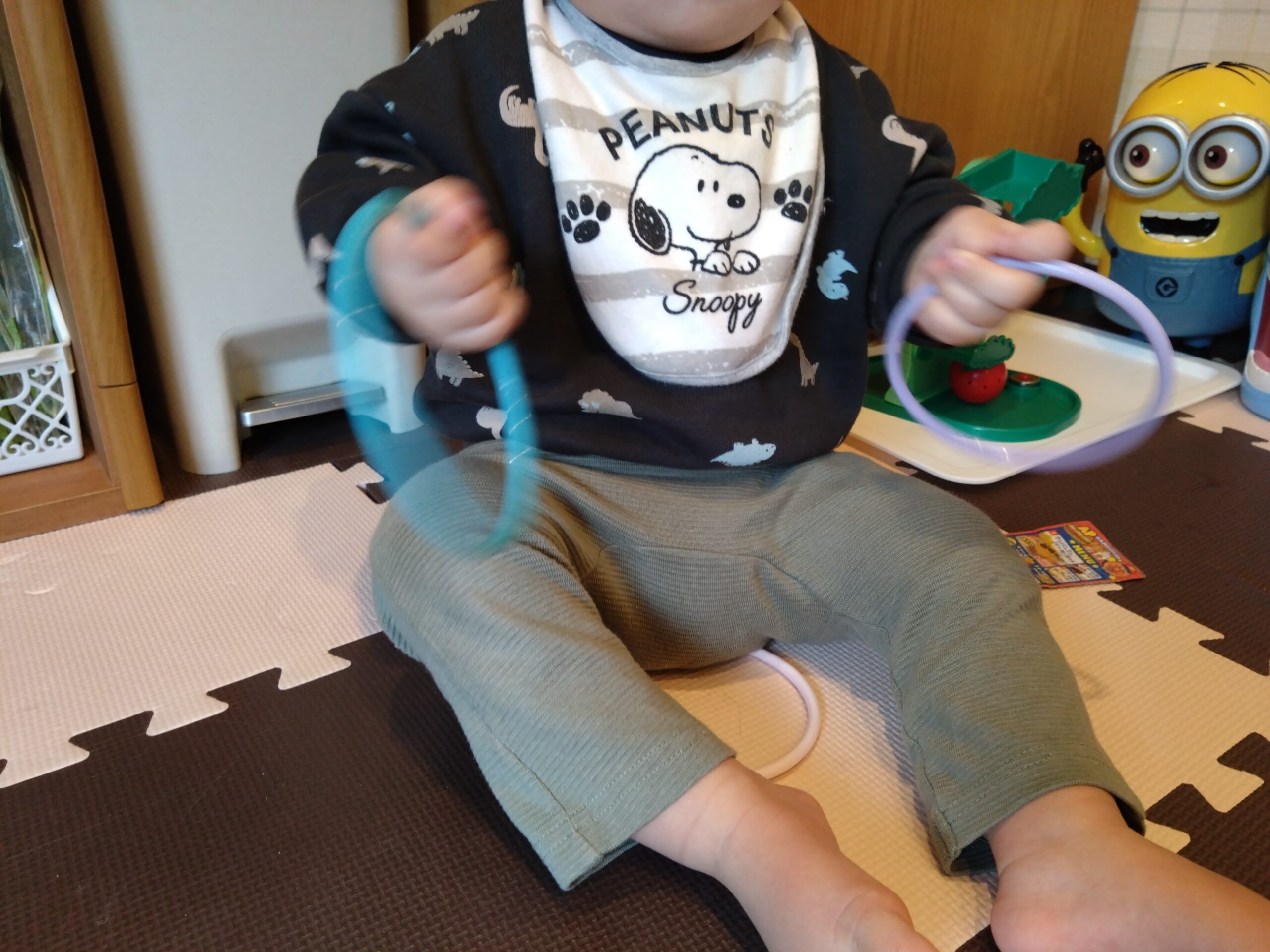 輪を両手に持ってカチカチ音がするとニコニコでした💓