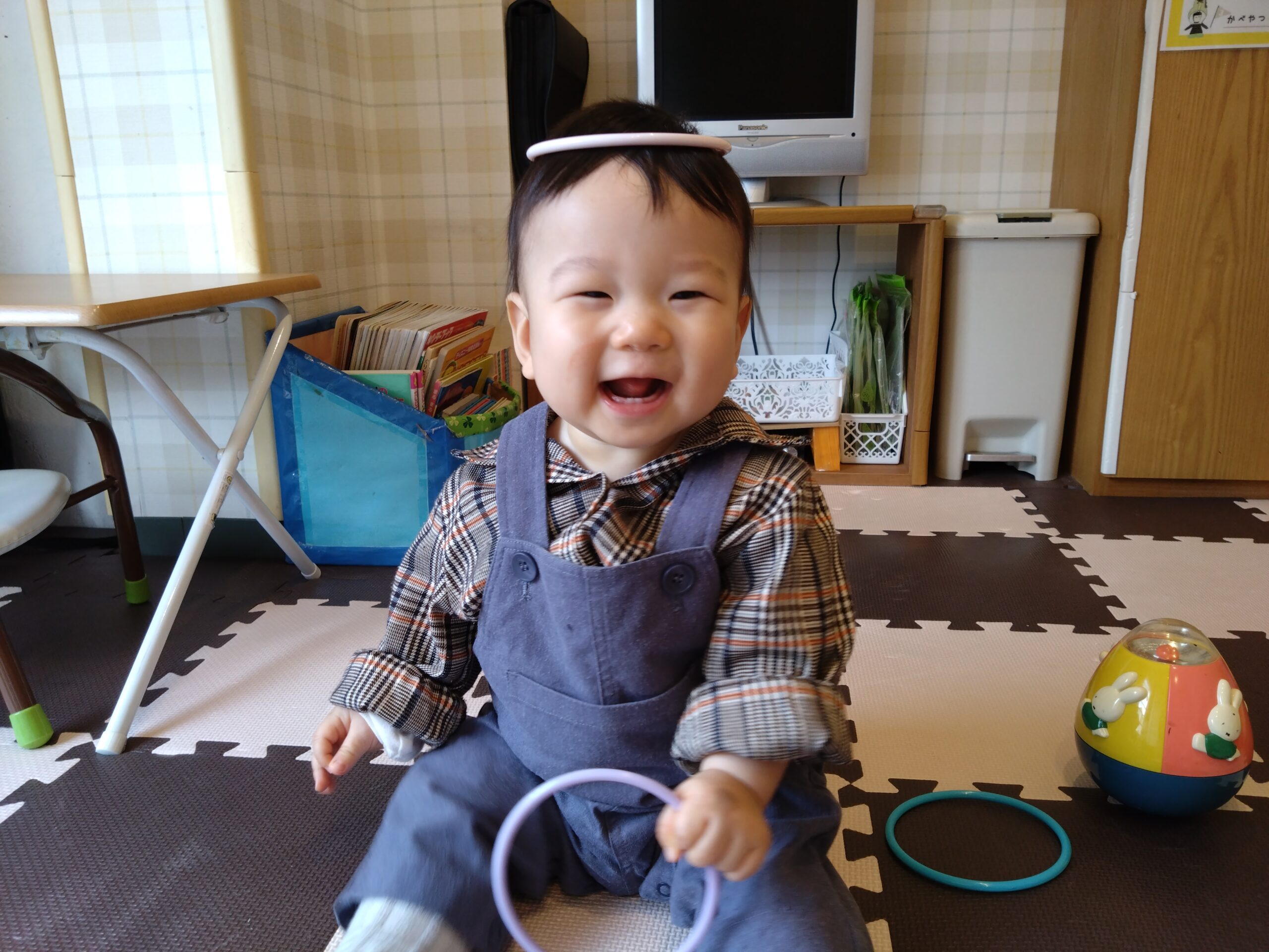 輪を頭に乗せると、んんっ?と不思議そうにしたり、キャッキャ笑ったり、反応がとってもかわいかったです💓