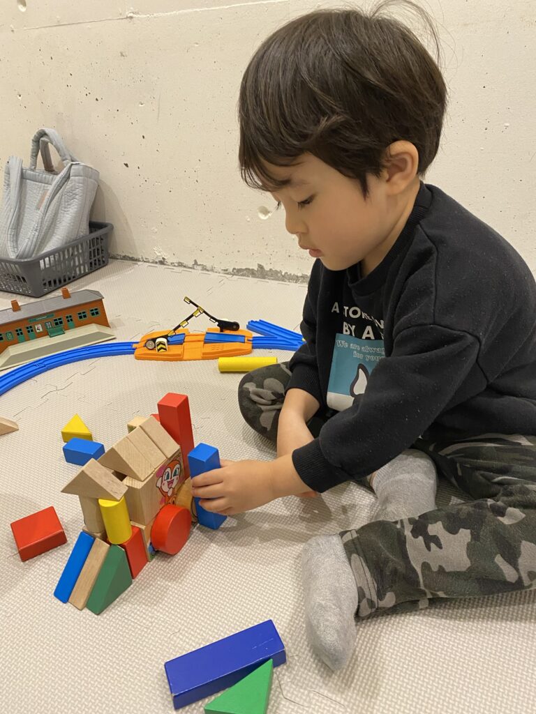 プラレールにトミカ、積み木におままごと、たくさんのおもちゃに大興奮でしたね!保育士とどちらが高く積み木を積めるか勝負をして楽しみました✨