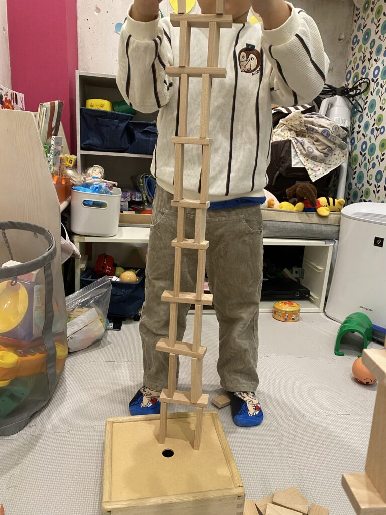 積み木が大好きのようで、お手本として載っている例をほとんどすべて真似して作りました!想像力豊かで素敵な男の子でした✨
