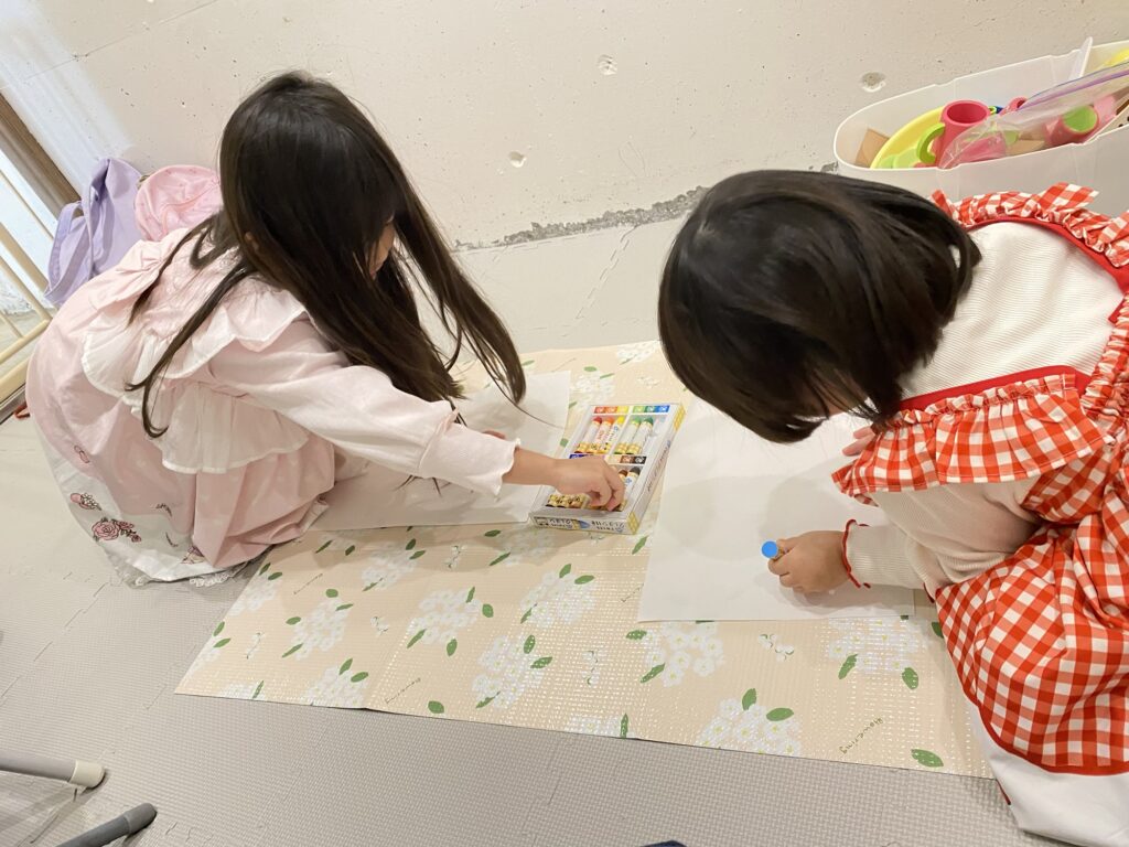 ふたりお揃いの可愛いお洋服で遊びにきてくれました✨お姉ちゃんは長期休暇中のみの託児利用ですが、楽しみにしてくれているようで嬉しいです🥰