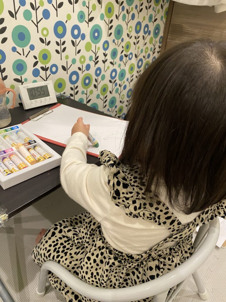 しっかり座ってお絵描き!一番好きそうなのはみどり色でしたね✨店内をお散歩したり電車を見たりしてのびのび過ごしました☺️