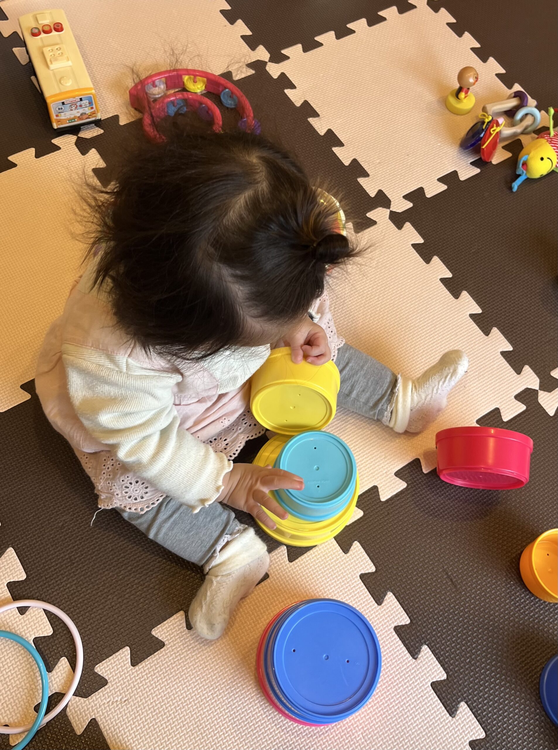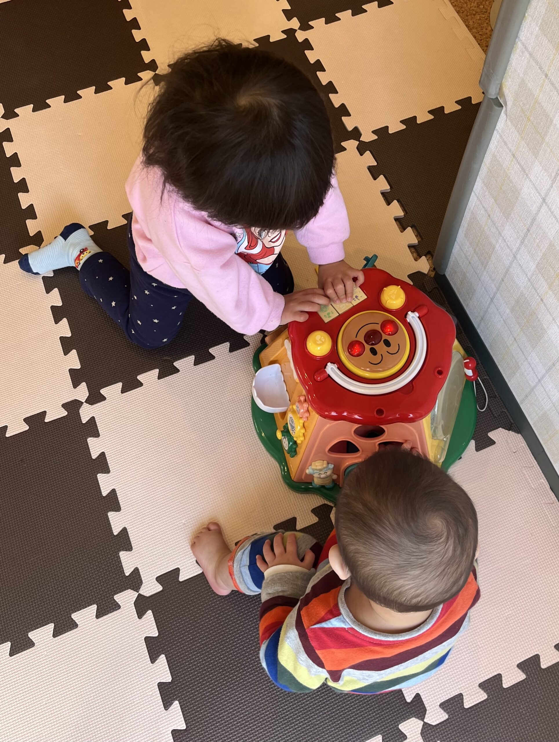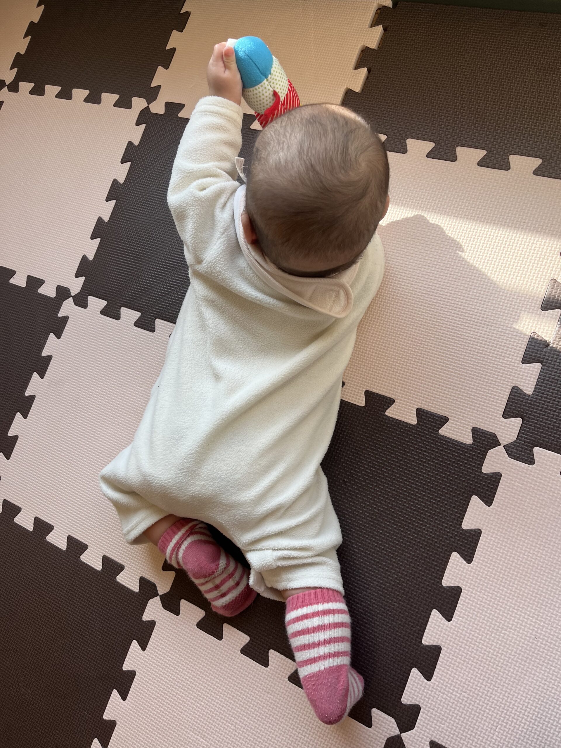 初めてのキッズルームでしたが転がる玩具をみた瞬間かわいい足をバタバタ動かして笑顔をいっぱい見せてくれました😊💕