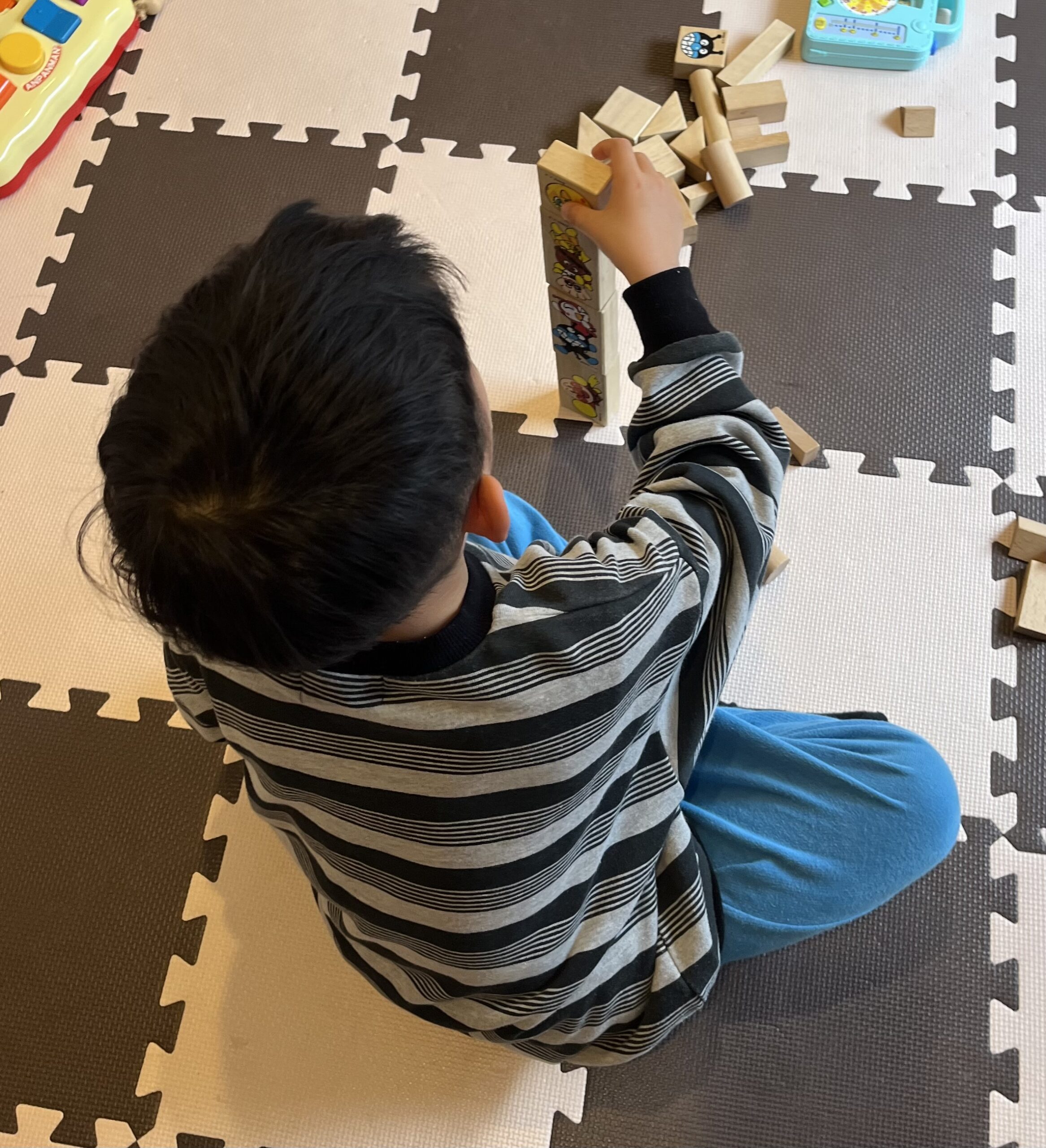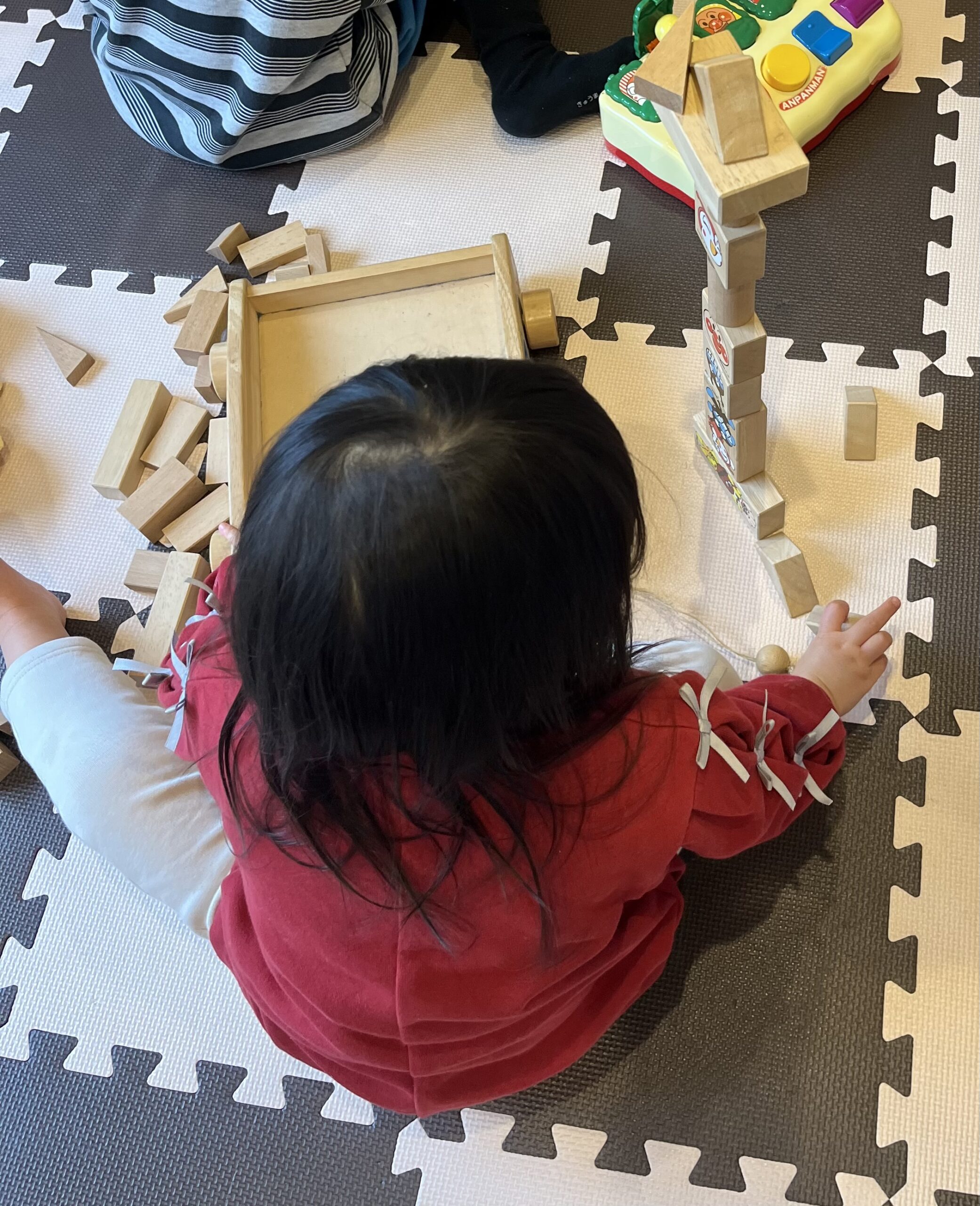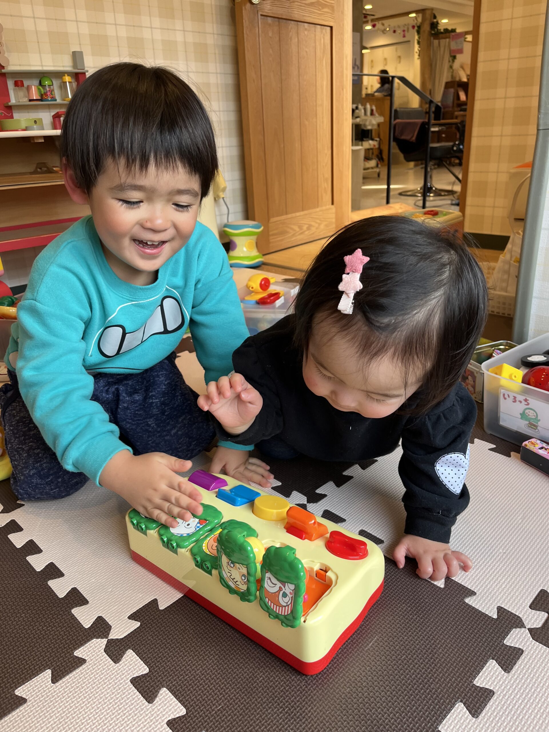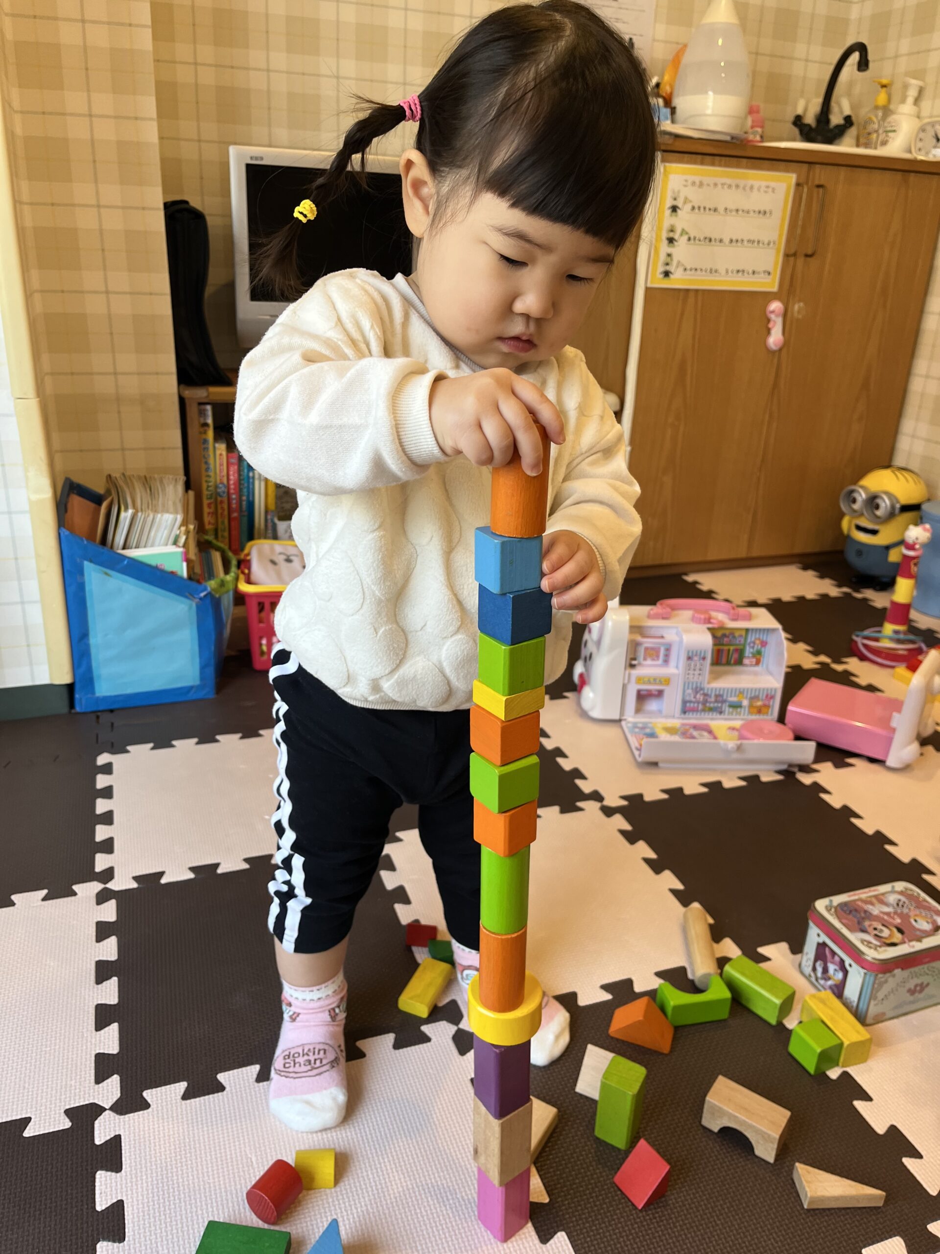 型はめ、シール貼り、積み木など手先を使った遊びをじっくり楽しんでいました✨