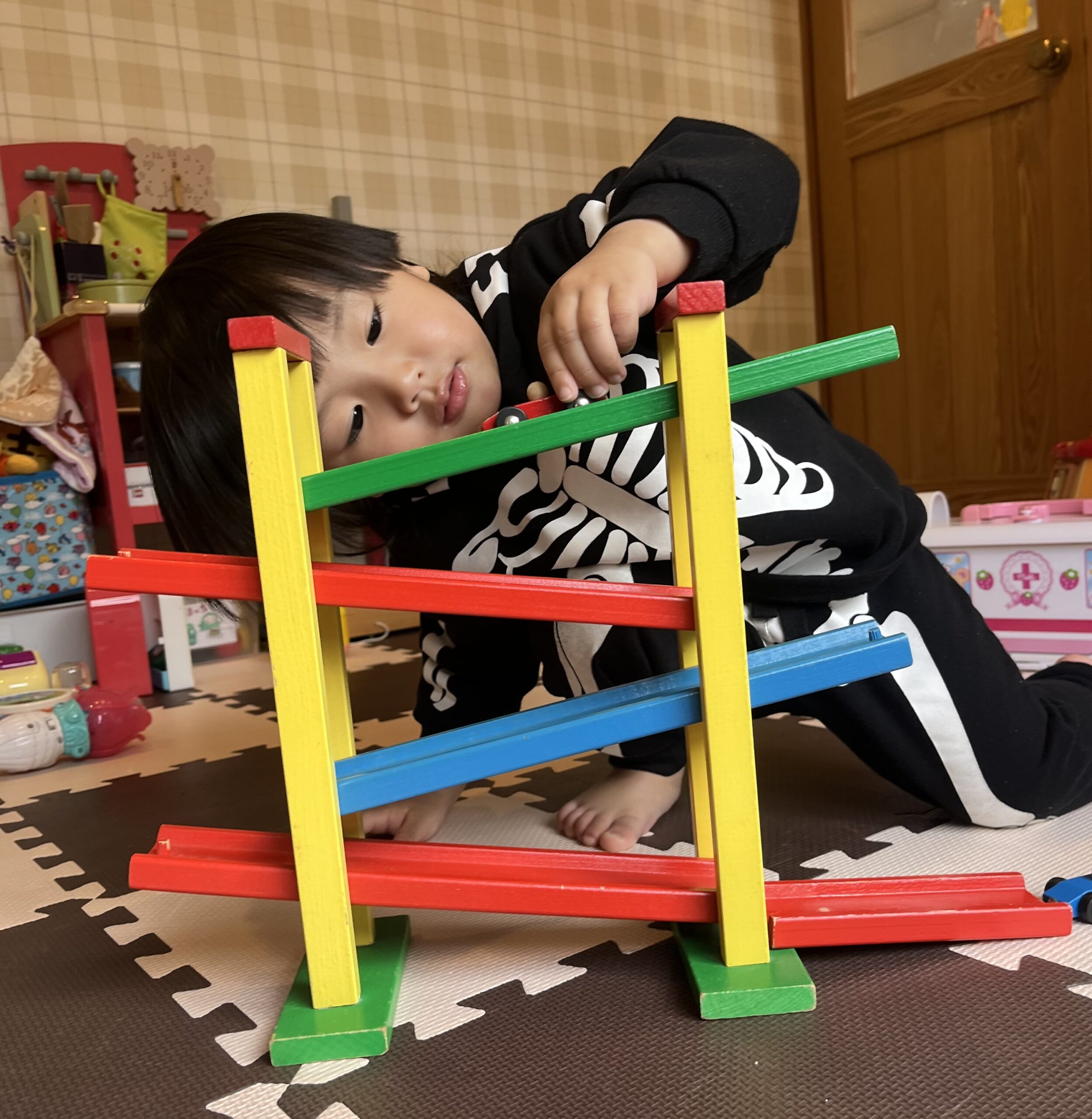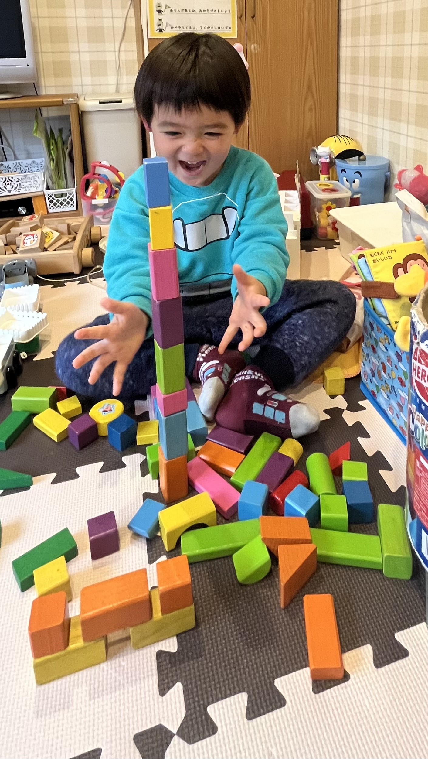 転がしたり、ならしたり、積み上げたり、壊したり。ニコニコ笑顔でいっぱい遊んでくれました😊