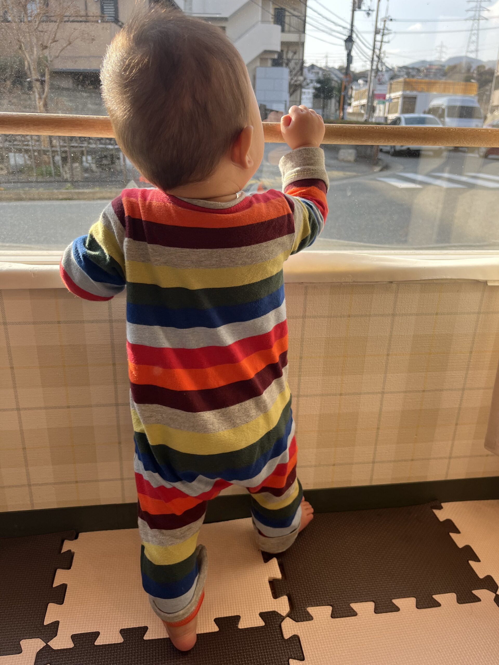 支えがあるとどこででもつかまり立ちを披露してくれました☺️