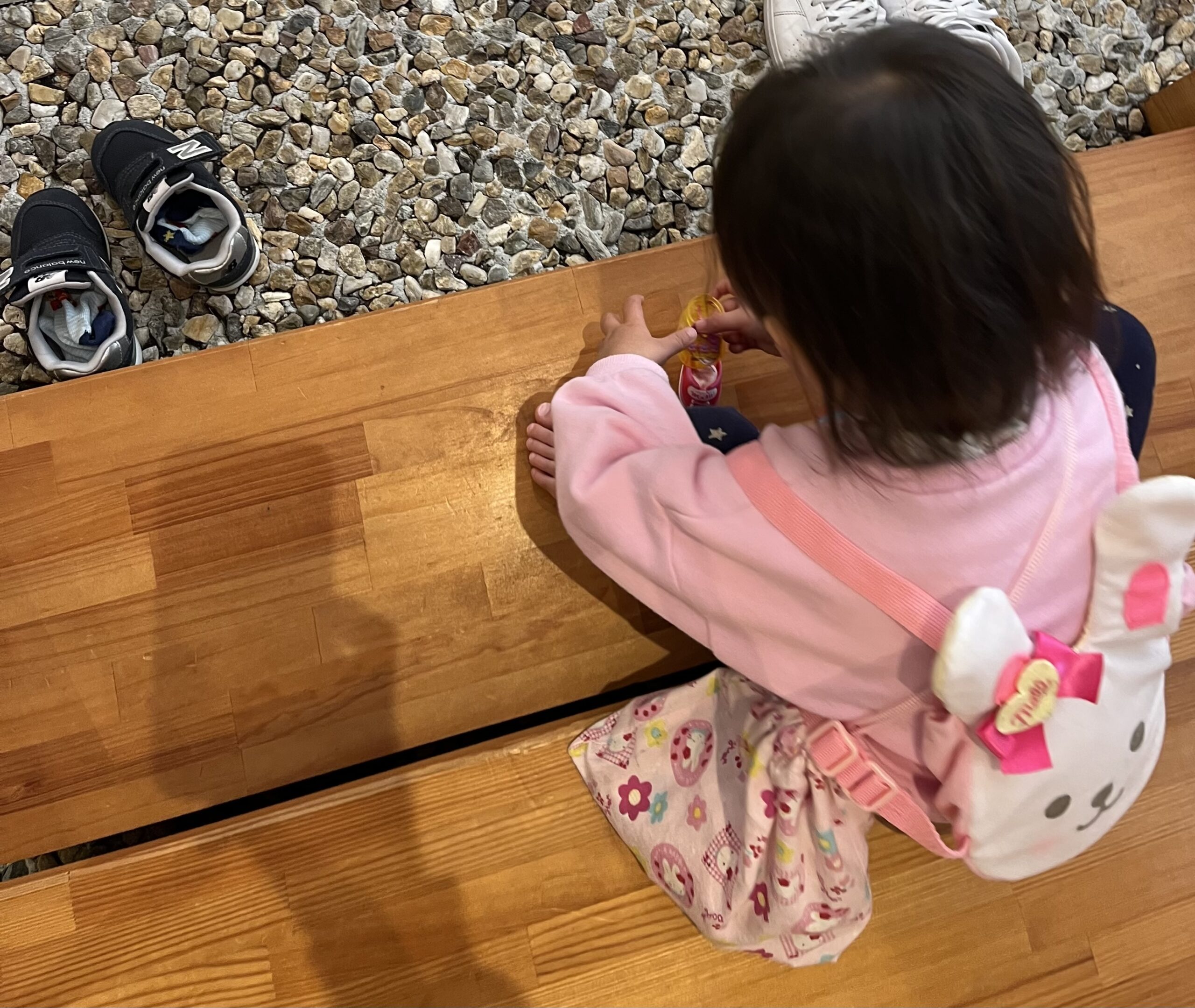 出かけ先でくつ下を脱いだメルちゃん。メルちゃんの靴の中にくつ下を入れて、自分の靴の横に並べる姿がとっても可愛かったです👟