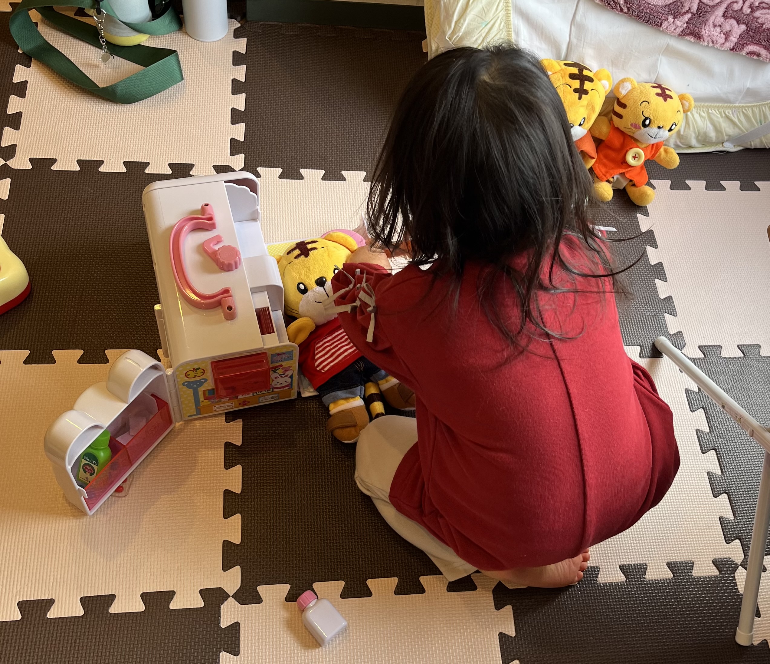 メルちゃんにしっかりマスクをつけてあげて病院へ🏥