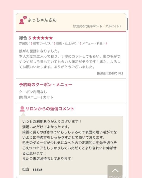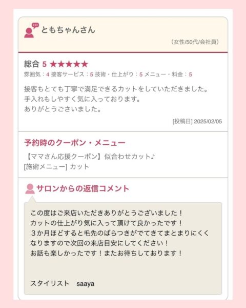 〈dot.hair 美容師の口コミ〉 ~さあやさんver~