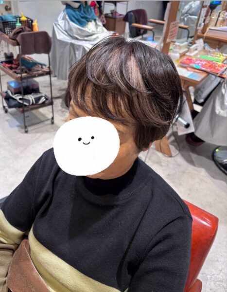 お客さまはハイライトが初めてなので、初めから全てに入れずまず前髪だけに入れました。