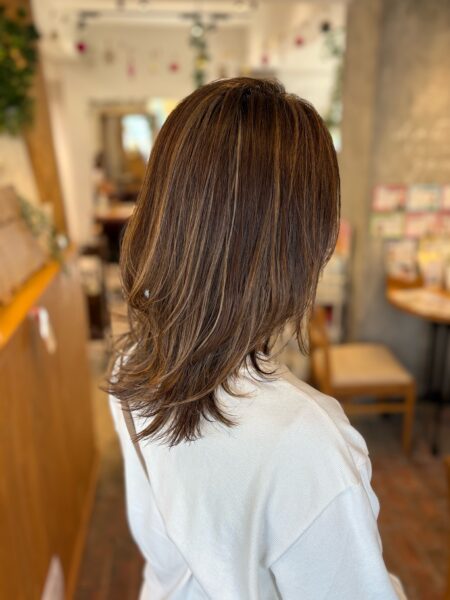 ミディアムのお客様はレイヤーの高さに合わせてワンカールのみなので巻くのも簡単です。