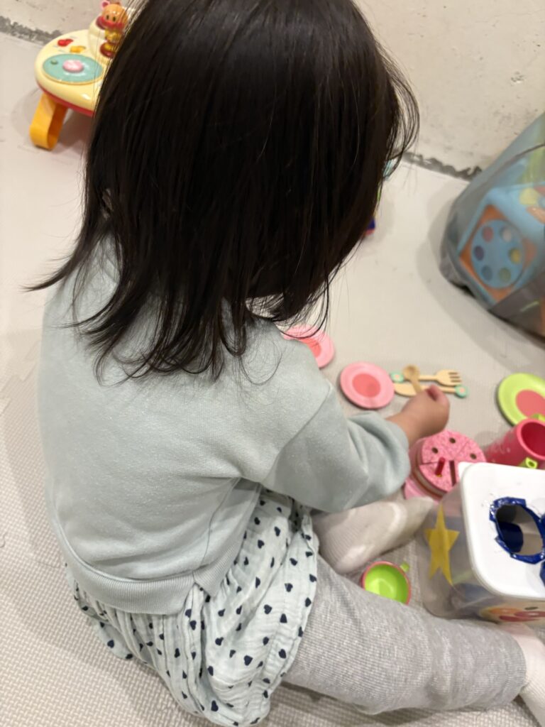 最初はお母さんと離れたくなくて、『ママ〜』と何度も呼んでいました。気持ちを切り替えることができて、一緒にままごと遊びを楽しみました😊笑顔もたくさん見れてとても可愛かったです♩