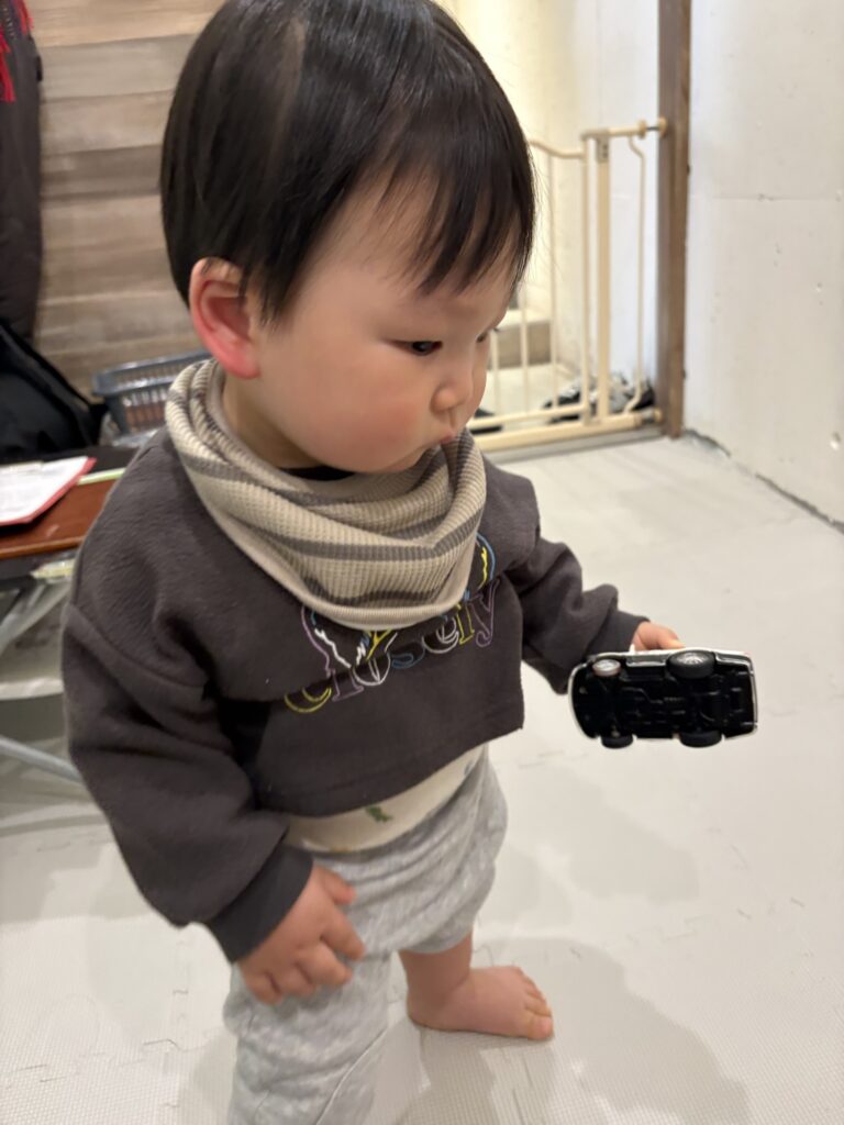 目が覚めてキッズルームに入ってからもご機嫌で、車のおもちゃでたくさん遊びましたよ🚙♬