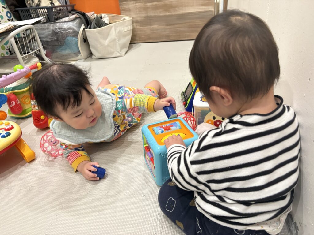 はじめまして!偶然にも同じくらいの月齢の男の子同士で同室になりました♩2人ともすぐに打ち解けることができて、おもちゃも譲り合いながら、仲良く最後まで遊べました☺️