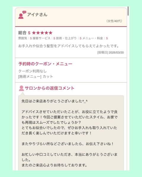 〈dot.hair gem美容師の口コミ〉~あすかさんver~