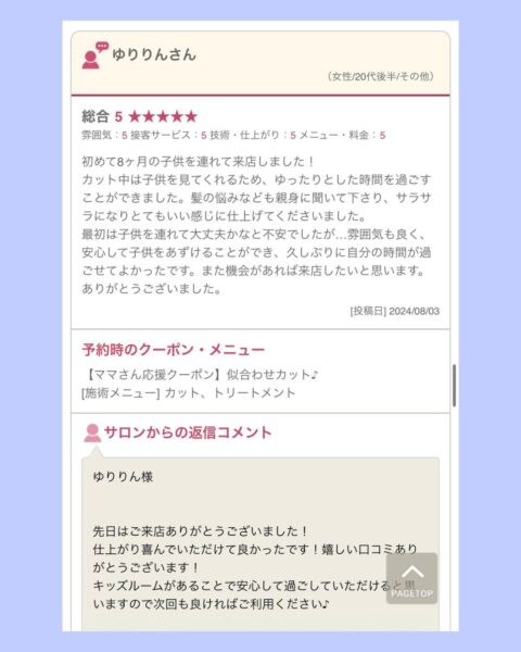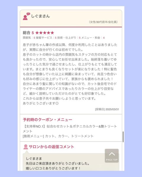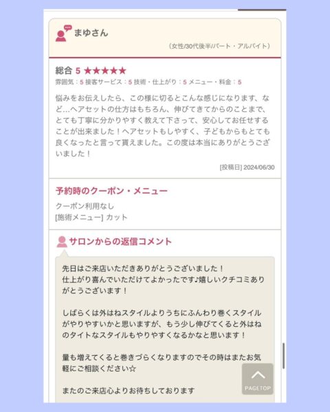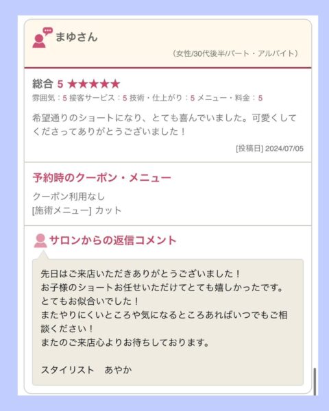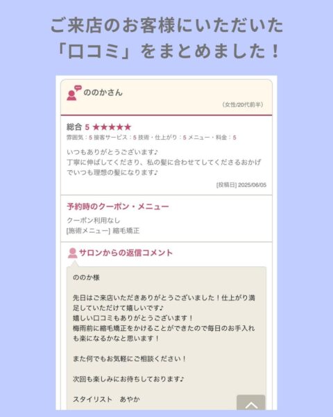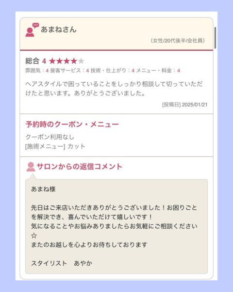 〈dot.hair 美容師の口コミ〉 ~あやかさんver~